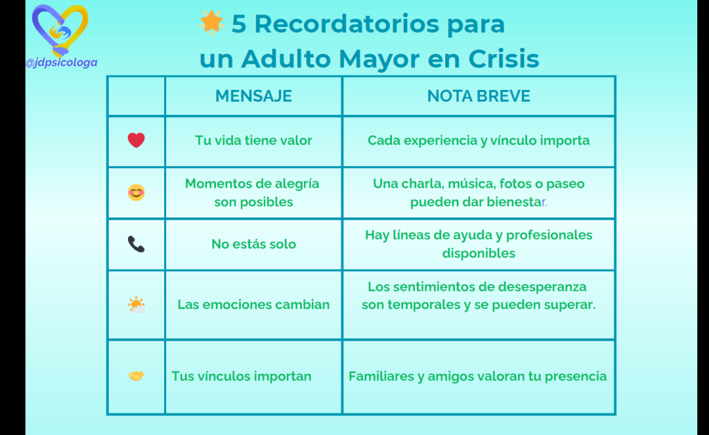 - Sentido vital: proyectos, actividades significativas, espiritualidad.